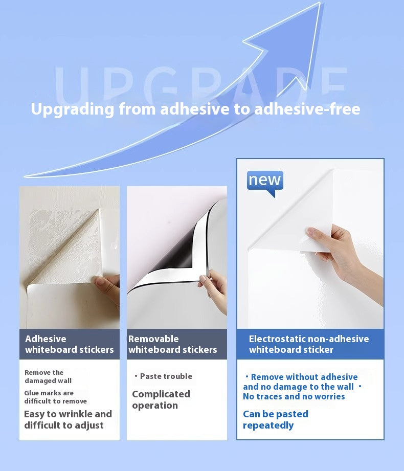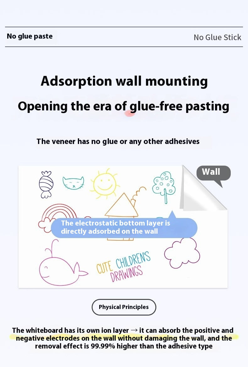 FlexBoard™ is the no-drill whiteboard that uses electrostatic charge to stick to smooth, dust-free surfaces (walls, doors, glass, or cabinets) in seconds. Make your study plans, formulas, to-dos, and mind maps visible at a glance—achieve total clarity instead of mental overload.